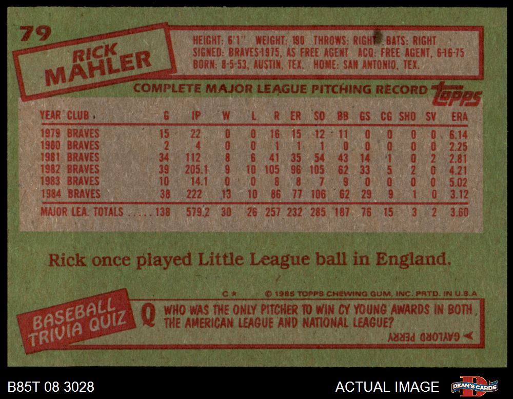 1985 Topps #79 Rick Mahler