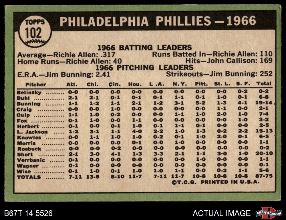 1967 Topps #102 Phillies Team 2.5 - GD+