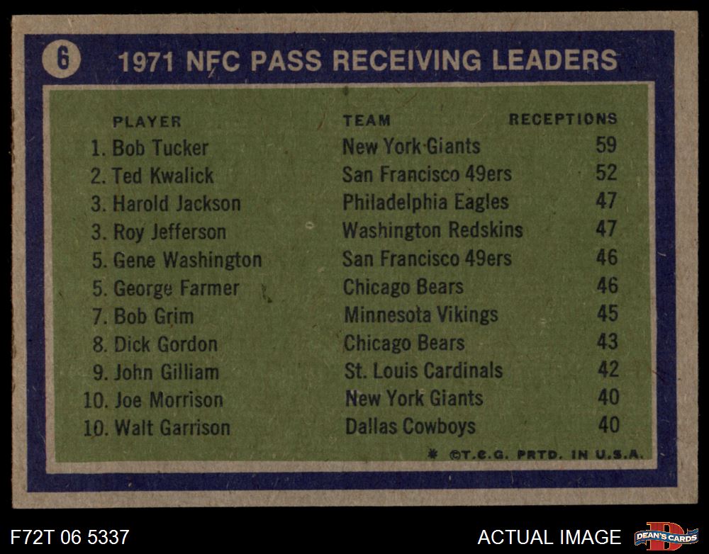 1972 Topps #6 - Bob Tucker / Ted Knalick / Harold Jackson / Roy Jefferson NFC Receiving Leaders 7 - NM