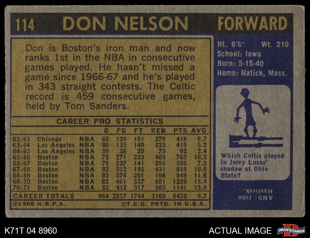 1971 Topps #114 Don Nelson 3 - VG