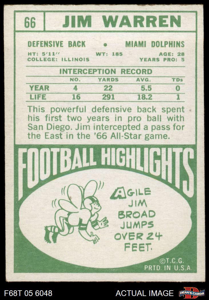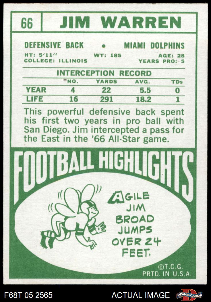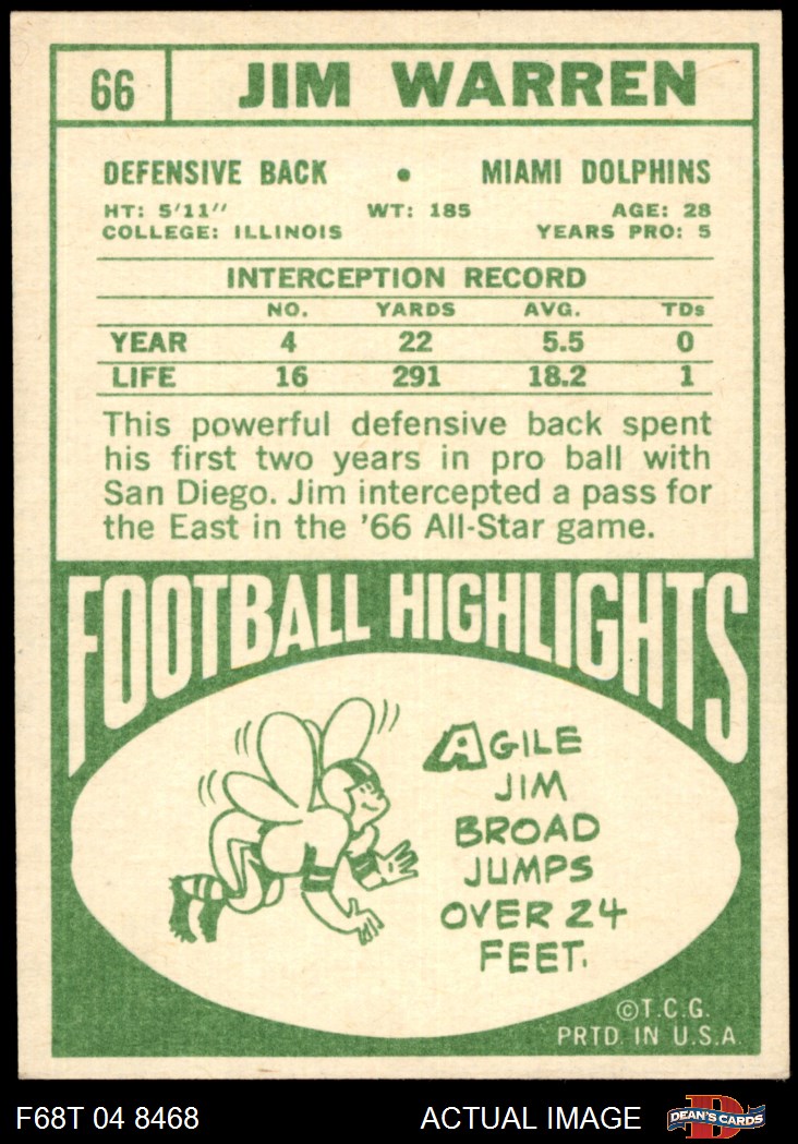 1968 Topps Football Cards (2,531 available)1968 Topps Dolphins (103 available)