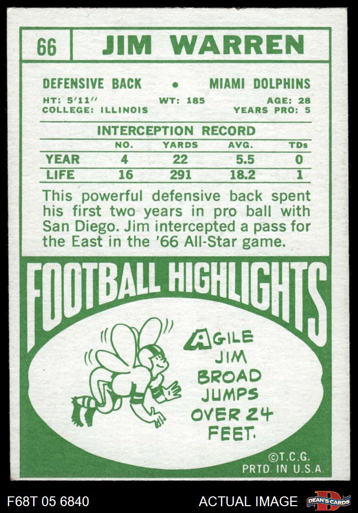 1968 Topps #66 Jim Warren 5 - EX