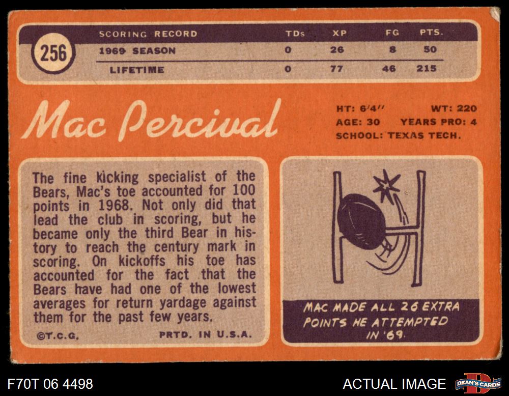 1970 Topps #256 Mac Percival 2 - GOOD