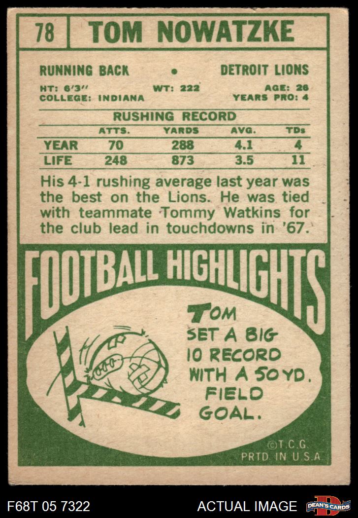 1968 Topps #78 Tom Nowatzke 3 - VG
