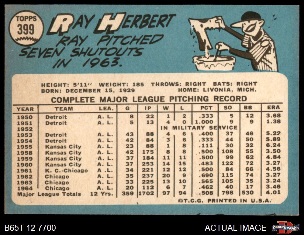 1965 Topps #399 Ray Herbert 4 - VG/EX