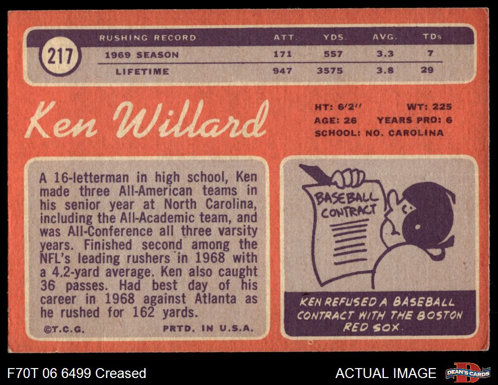 1970 Topps #217 Ken Willard Front Thumbnail