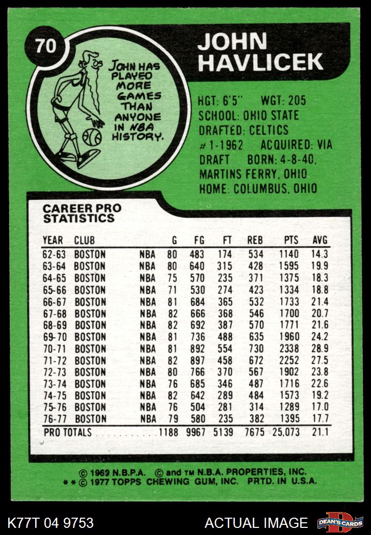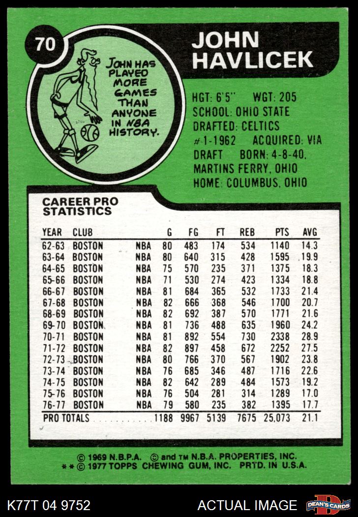 1977 Topps #70 John Havlicek 7 - NM