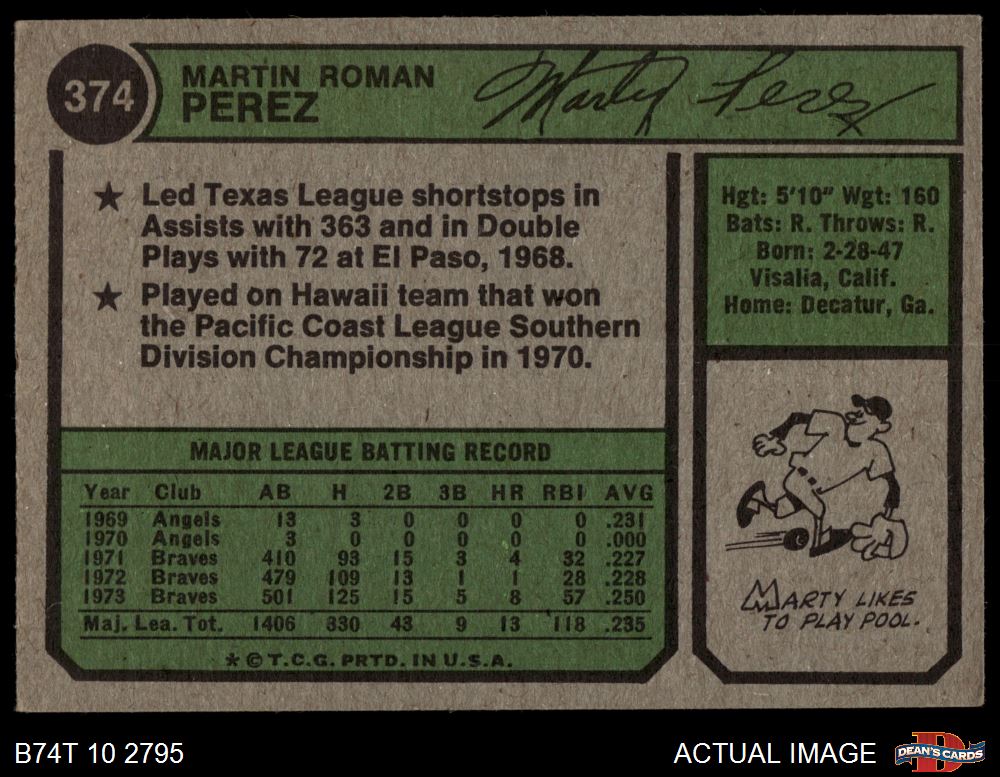 1974 Topps #374 Marty Perez 4.5 - VG/EX+