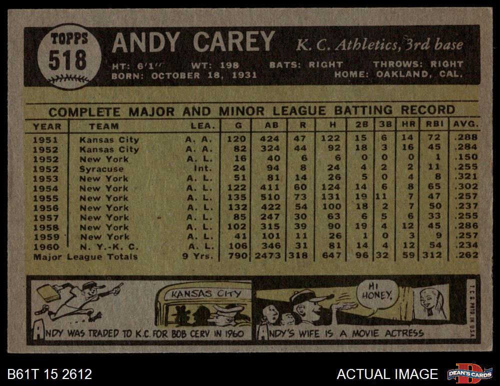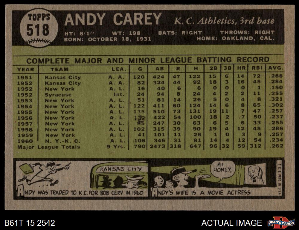 1961 Topps #518 Andy Carey