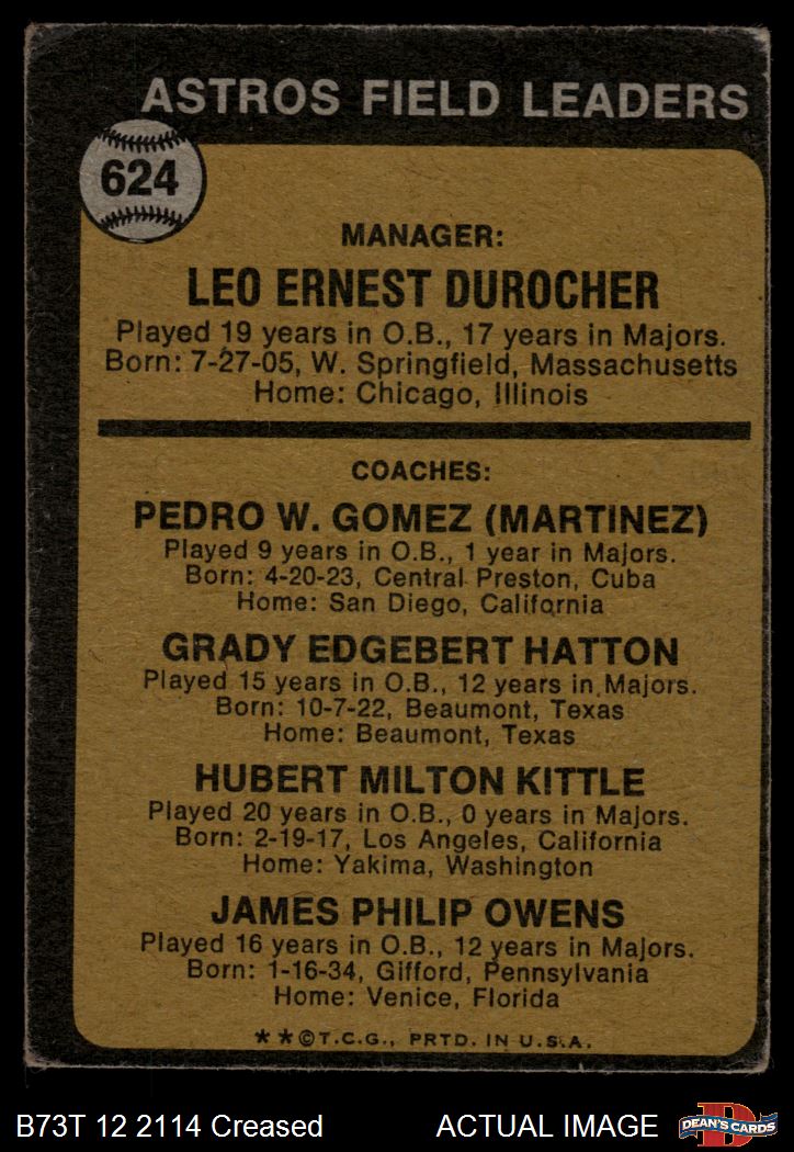 1973 Topps #624  -  Leo Durocher / Preston Gomez / Grady Hatton / Hub Kittle / Jim Owens Astros Leaders Front Thumbnail