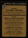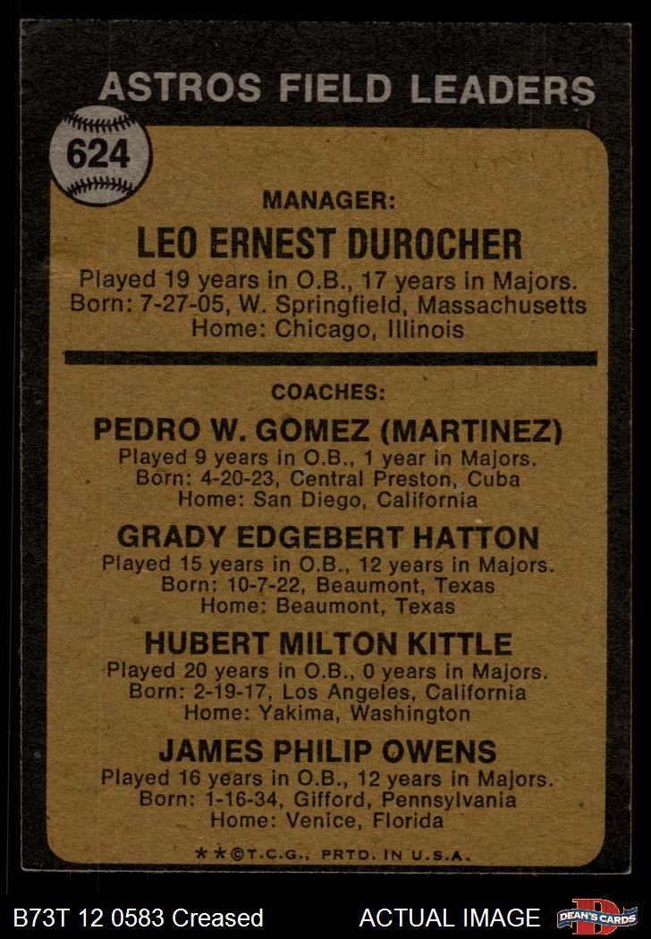 1973 Topps #624 - Leo Durocher / Preston Gomez / Grady Hatton / Hub Kittle / Jim Owens Astros Leaders 2 - GOOD