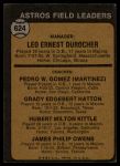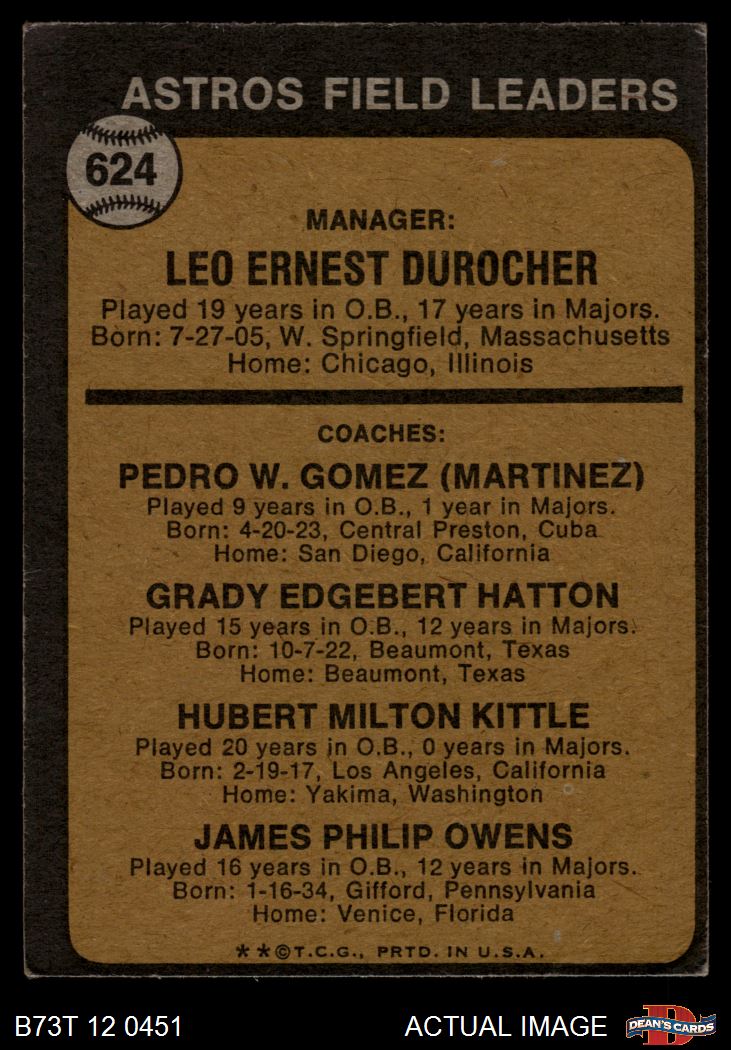 1973 Topps #624 - Leo Durocher / Preston Gomez / Grady Hatton / Hub Kittle / Jim Owens Astros Leaders 4 - VG/EX