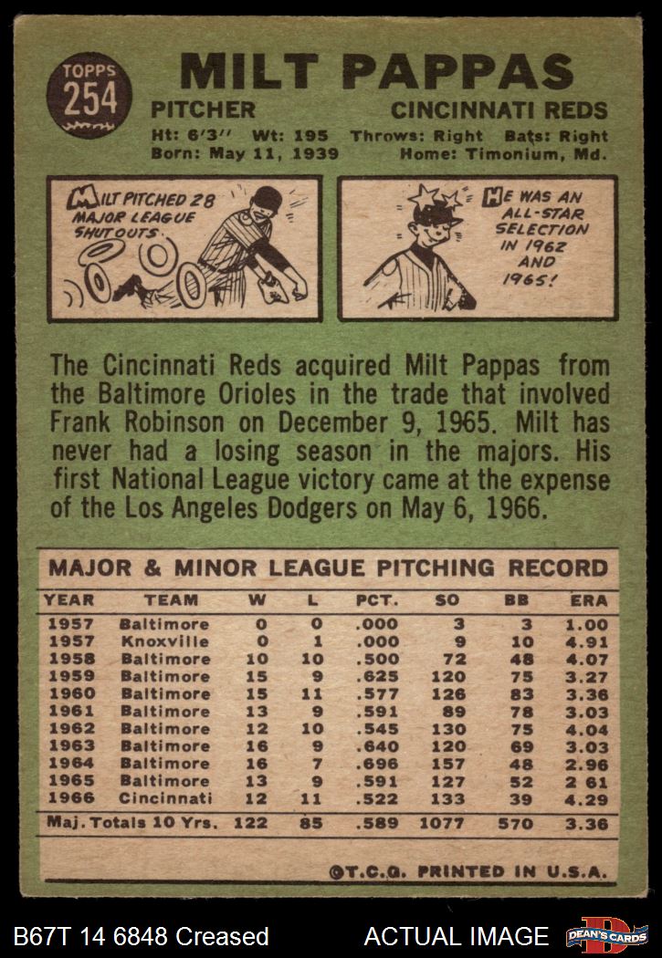 1967 Topps #254 Milt Pappas 2 - GOOD