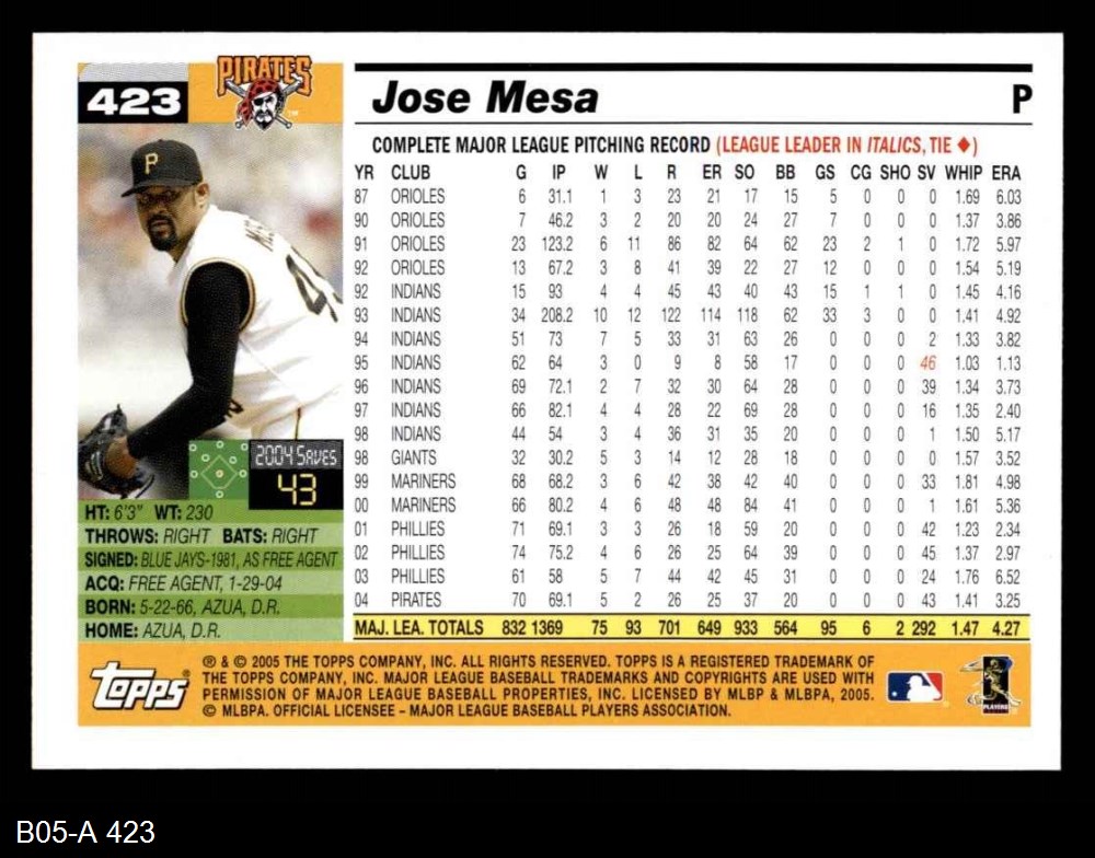2005 Topps #423 Jose Mesa 8 - NM/MT
