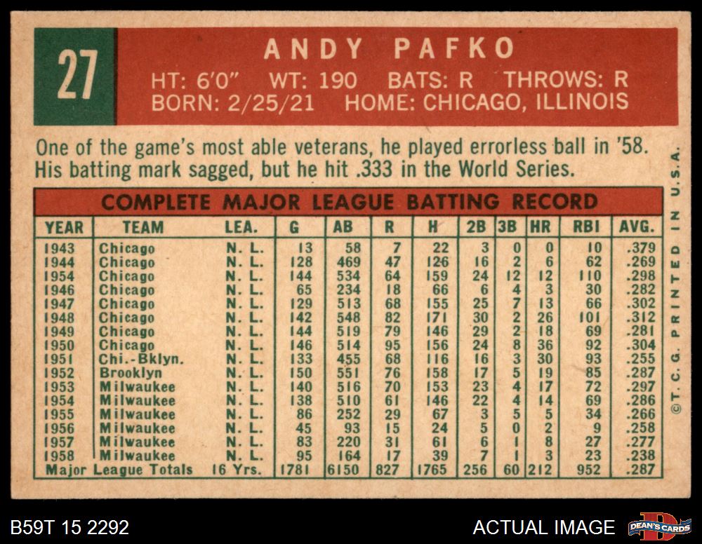 1959 Topps #27 Andy Pafko