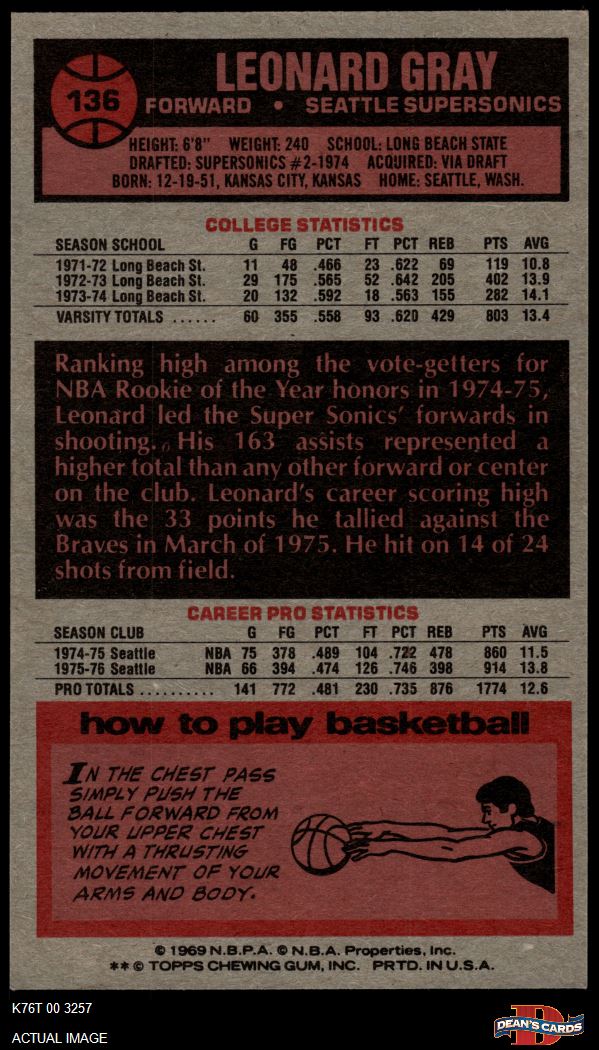 1976 Topps #136 Leonard Gray 6 - EX/MT