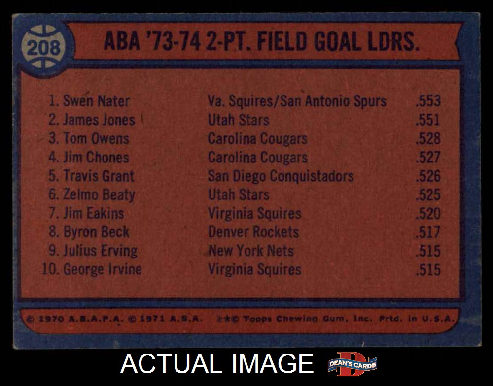 1974-75 Topps Basketball Cards (2,556 available)1974 Topps Spurs / Stars / Cougars (11 available)