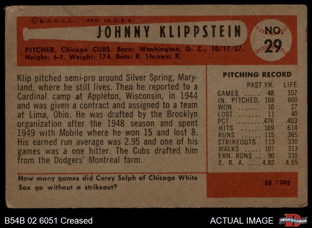 1954 Bowman #29 Johnny Klippstein 1.5 - FAIR
