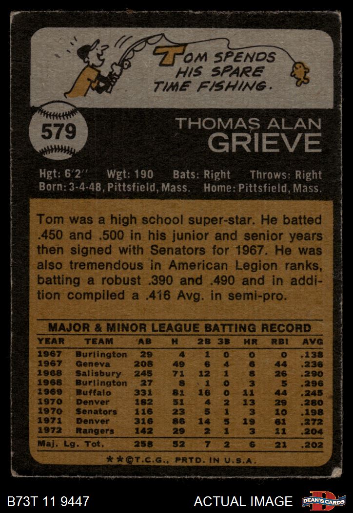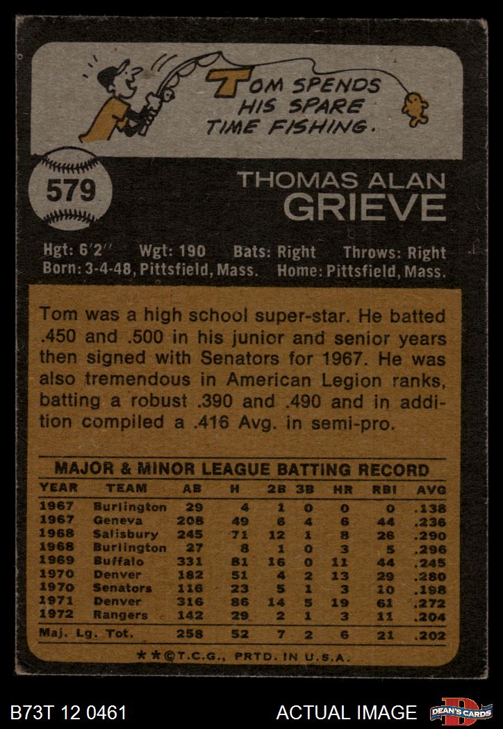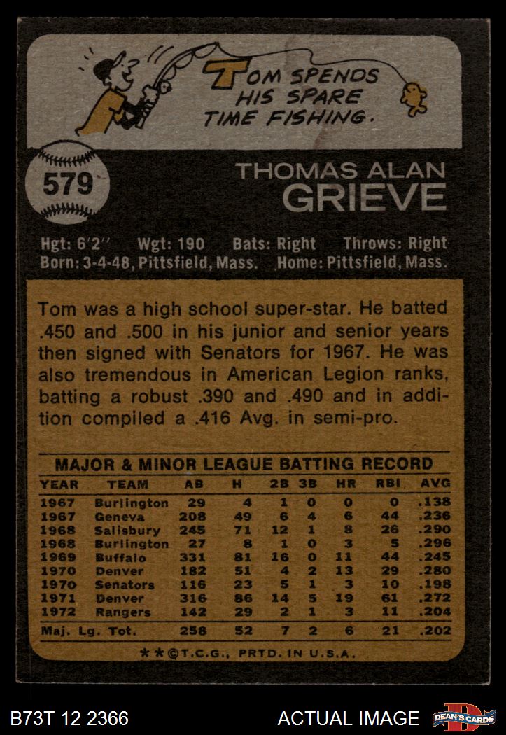1973 Topps #579 Tom Grieve 2 - GOOD