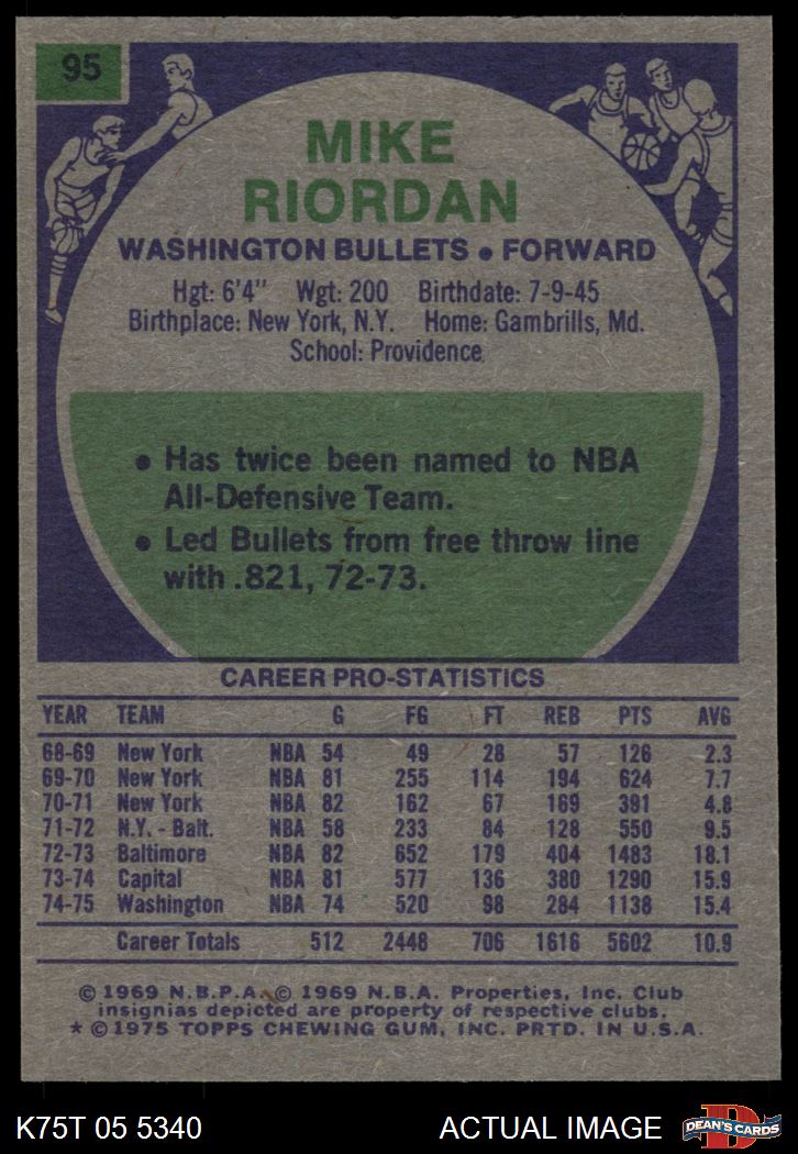 1975 Topps #95 Mike Riordan 6 - EX/MT
