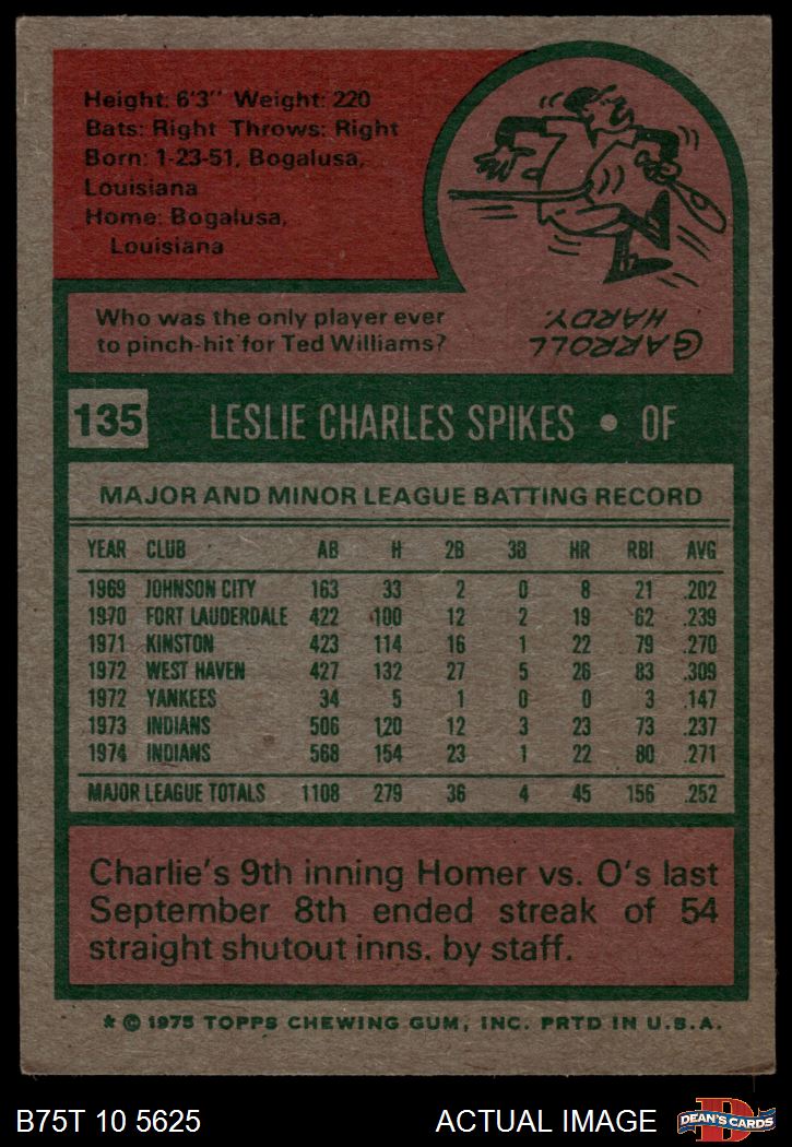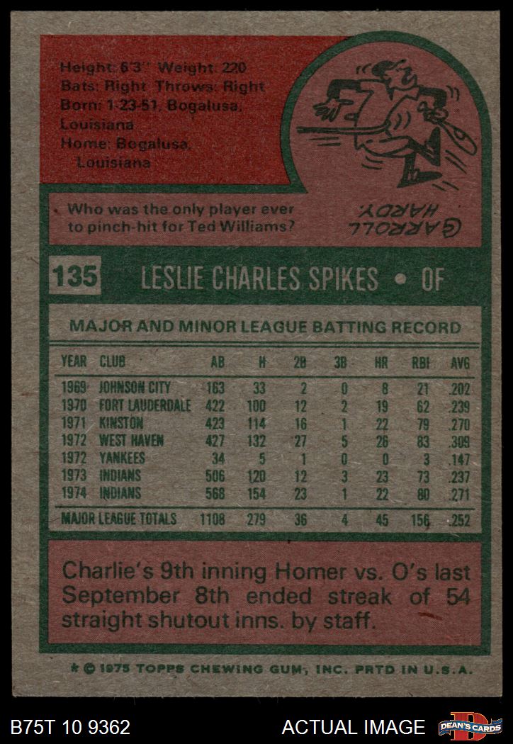 1975 Topps #135 Charlie Spikes 4 - VG/EX