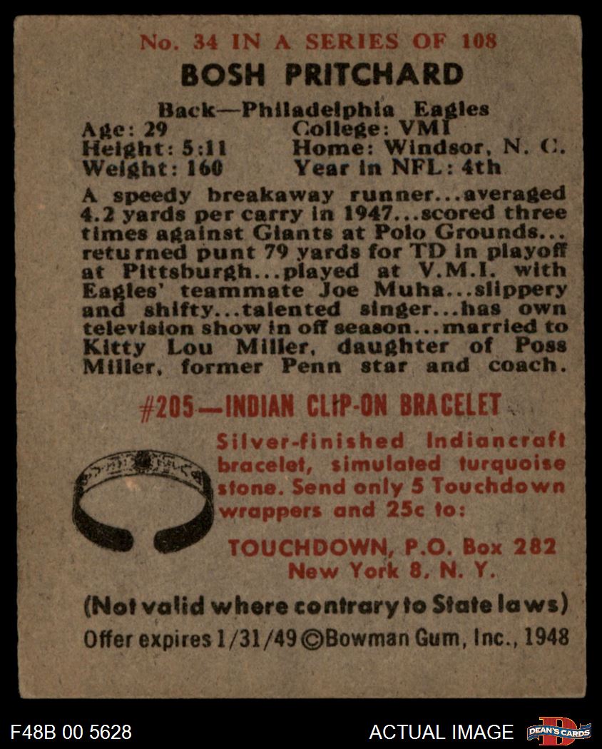 1948 Bowman #34 Bosh Pritchard 6 - EX/MT
