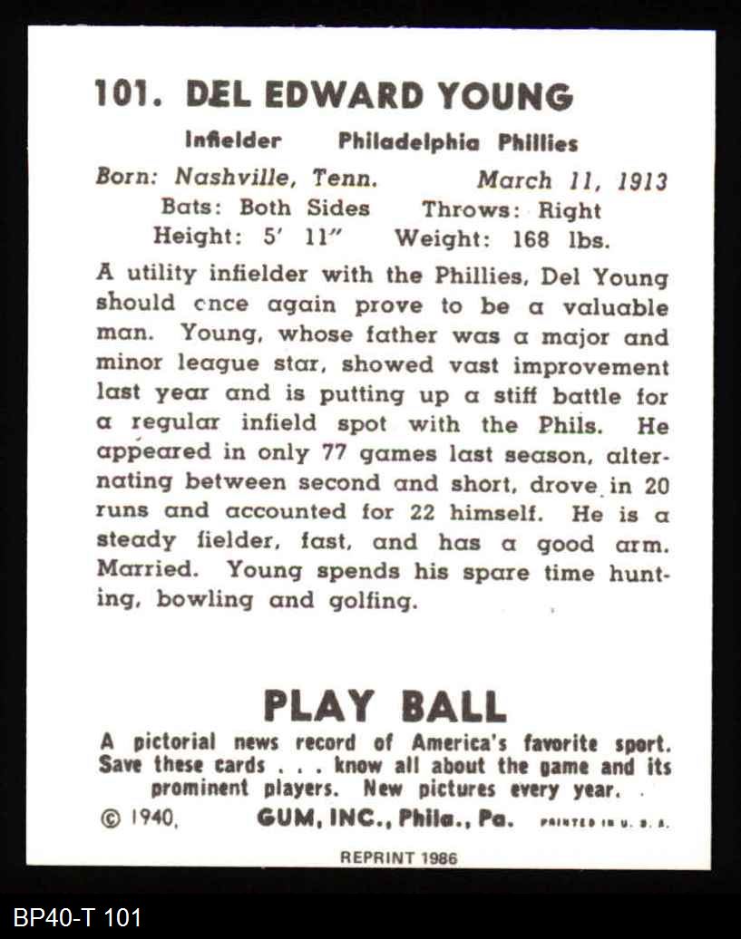 1940 Play Ball Reprint (1,465 available)1940 Play Ball Reprint Phillies (77 available)