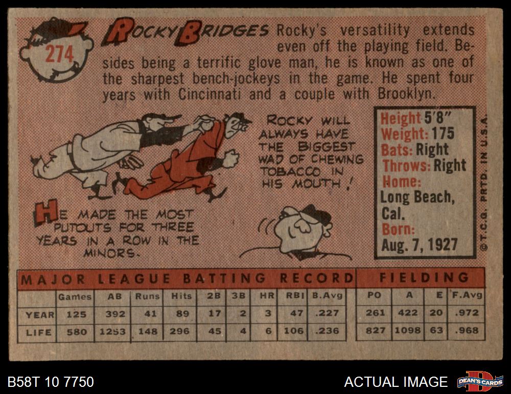 1958 Topps #274 Rocky Bridges 4 - VG/EX