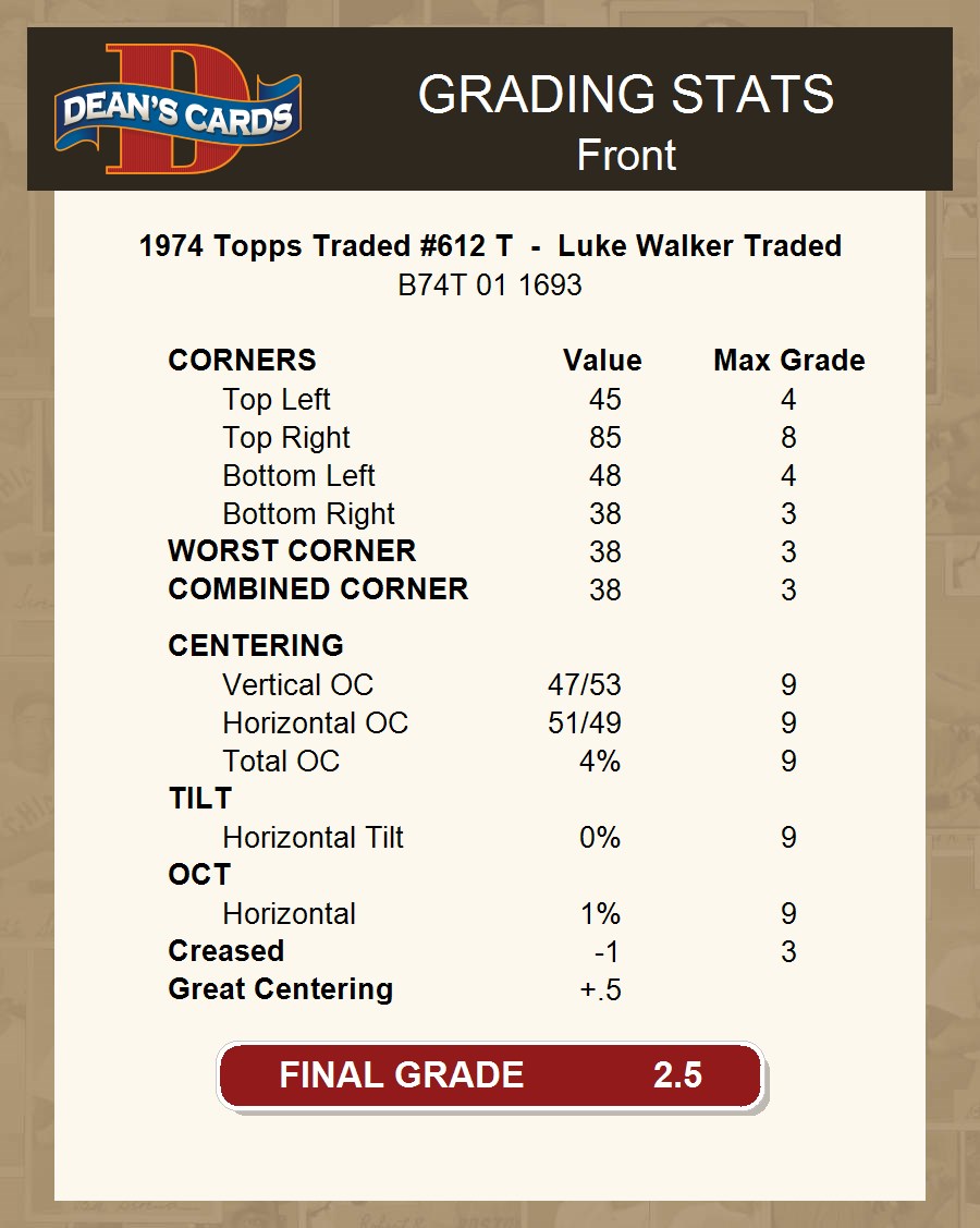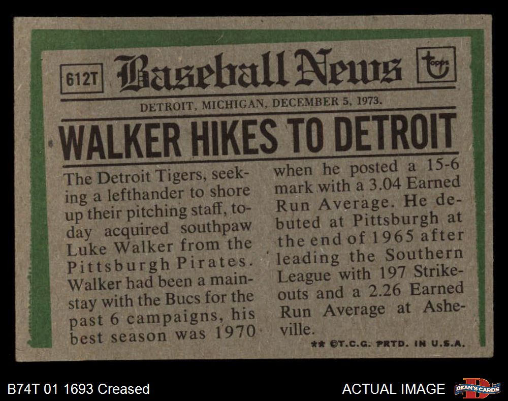 1974 Topps #612 T - Luke Walker Traded 2.5 - GD+