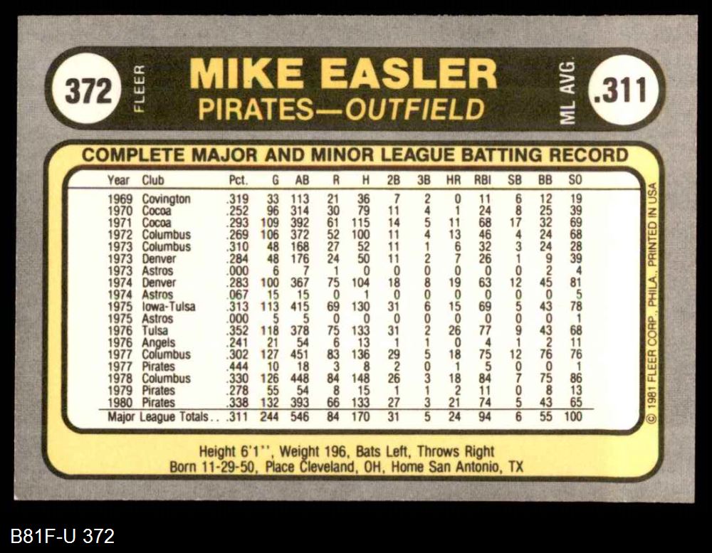 1981 Fleer #372 Mike Easler 8 - NM/MT