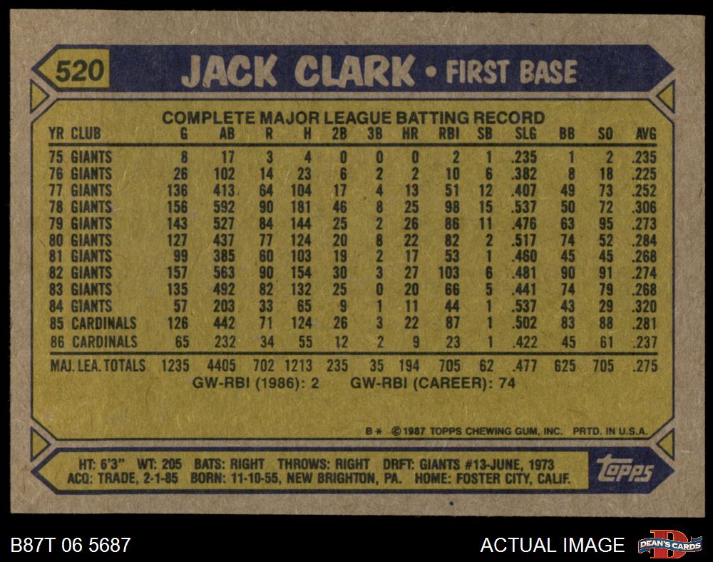 1987 Topps #520 Jack Clark 8 - NM/MT