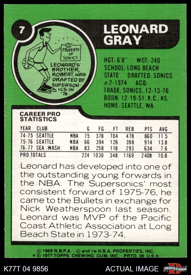 1977 Topps #7 Leonard Gray 3 - VG