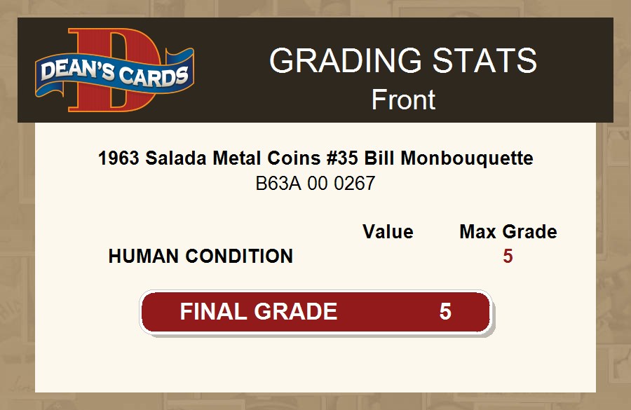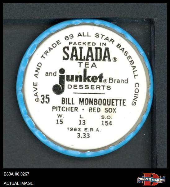 1963 Salada Metal Coins #35 Bill Monbouquette 5 - EX