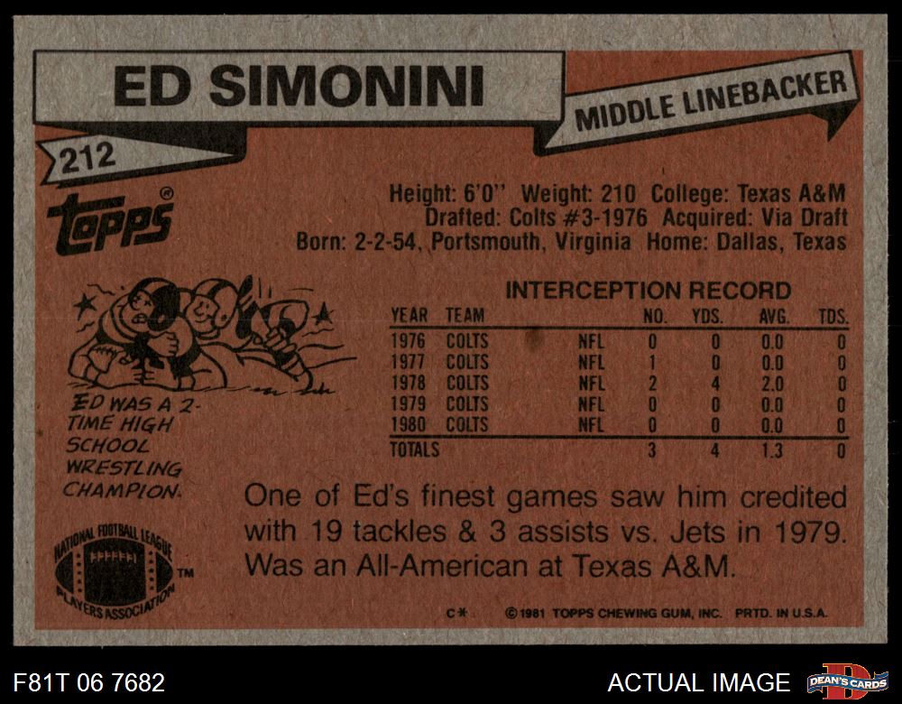 1981 Topps #212 Ed Simonini 8 - NM/MT