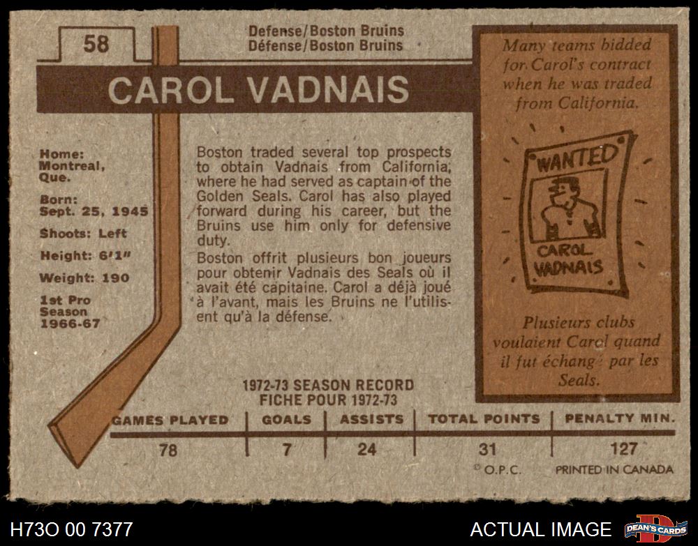 1973 O-Pee-Chee #58 Carol Vadnais 6 - EX/MT