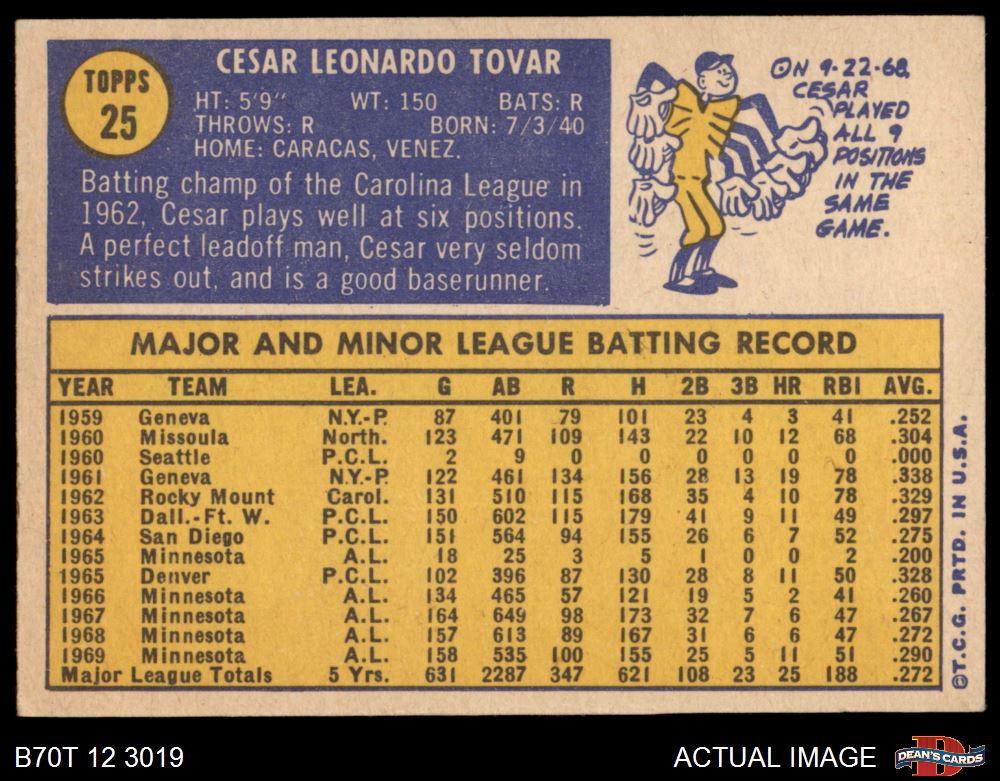 1970 Topps #25 Cesar Tovar 5 - EX