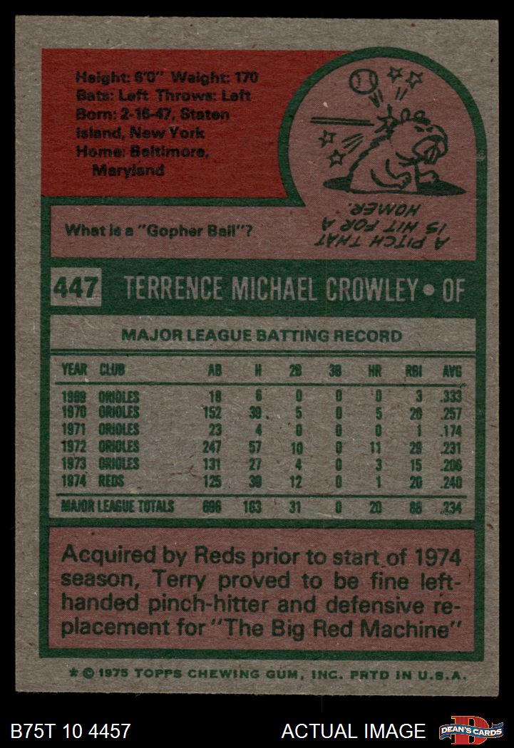 1975 Topps #447 Terry Crowley