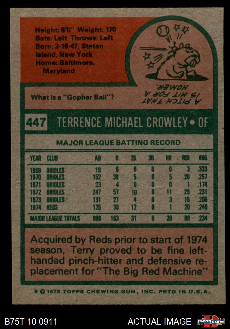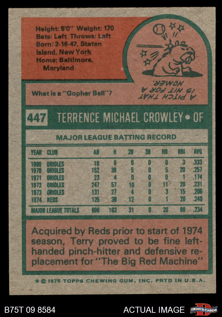 1975 Topps #447 Terry Crowley 8 - NM/MT