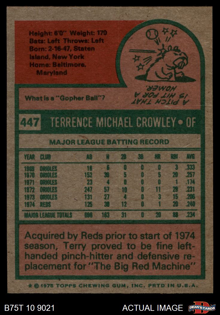 1975 Topps #447 Terry Crowley 9 - MINT