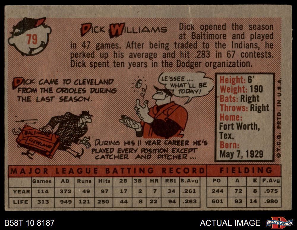 1958 Topps #79 WT Dick Williams 1 - POOR