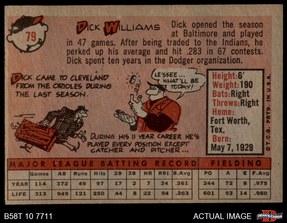 1958 Topps #79 WT Dick Williams