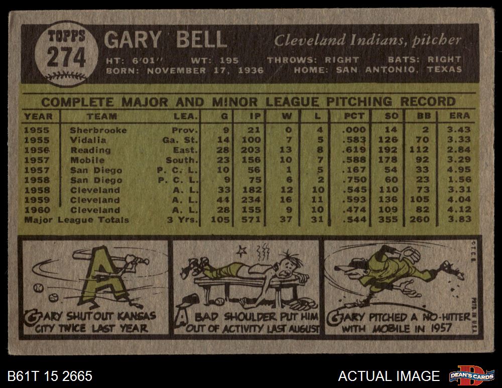 1961 Topps #274 Gary Bell