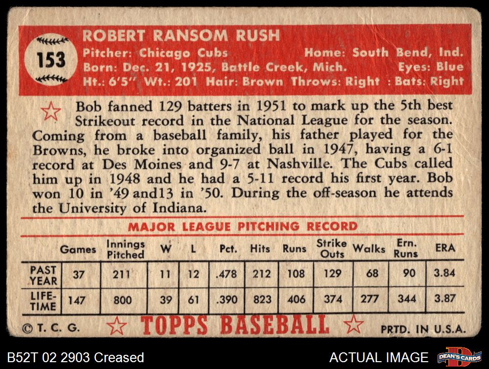 1952 Topps #153 CRM Bob Rush 1.5 - FAIR