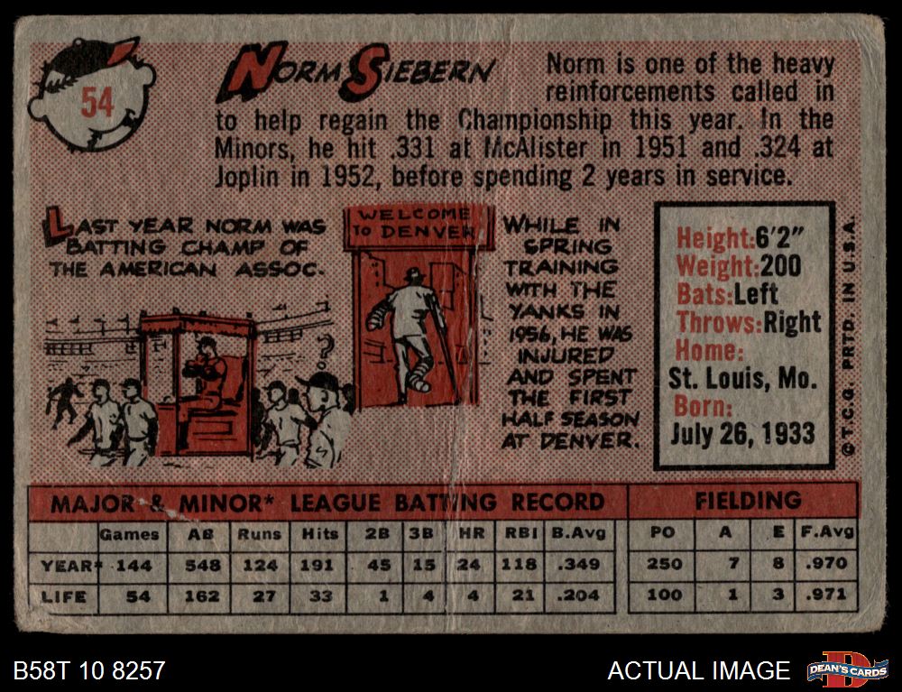 1958 Topps #54 Norm Siebern Front Thumbnail