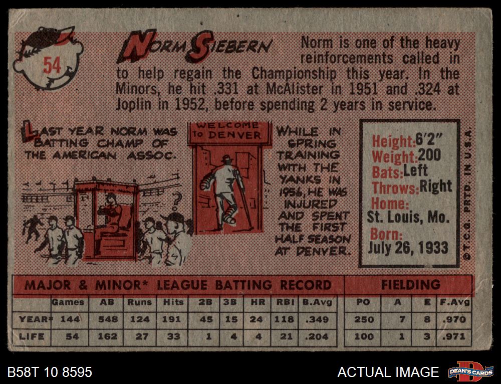 1958 Topps #54 Norm Siebern 2 - GOOD