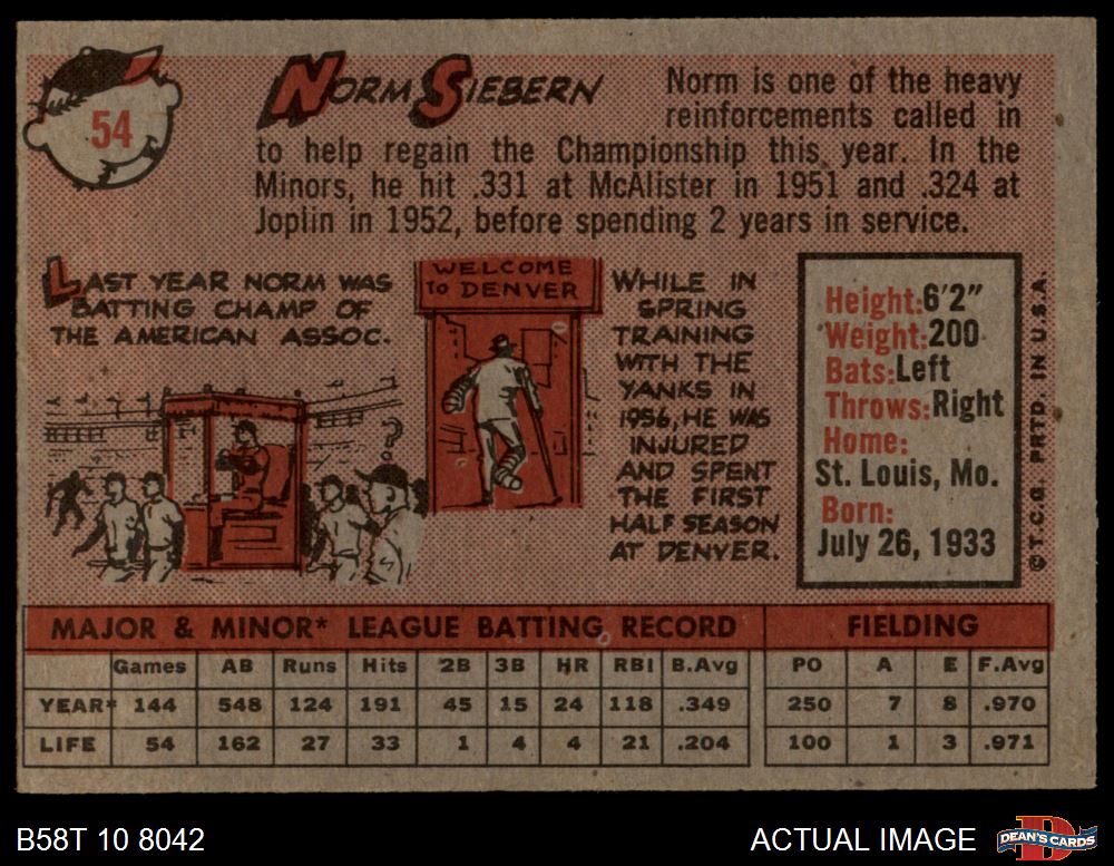 1958 Topps #54 Norm Siebern 5 - EX