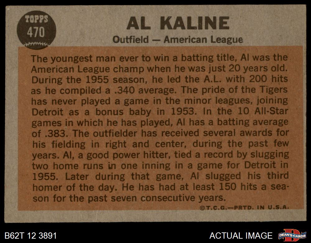1962 Topps #470 - Al Kaline All-Star 3 - VG