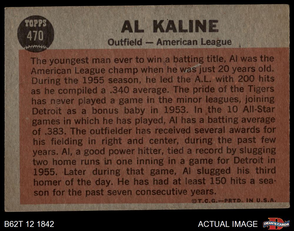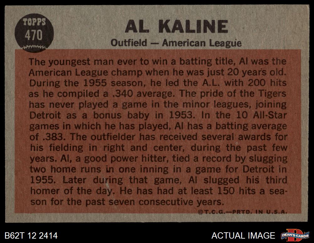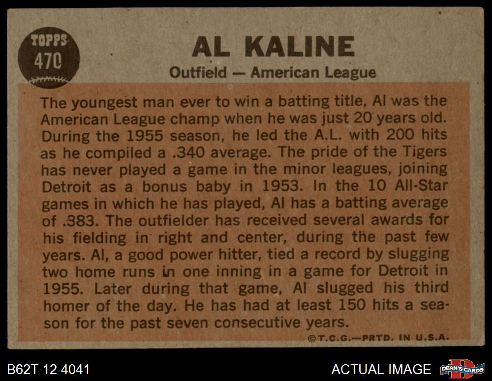 1962 Topps #470 - Al Kaline All-Star 4 - VG/EX