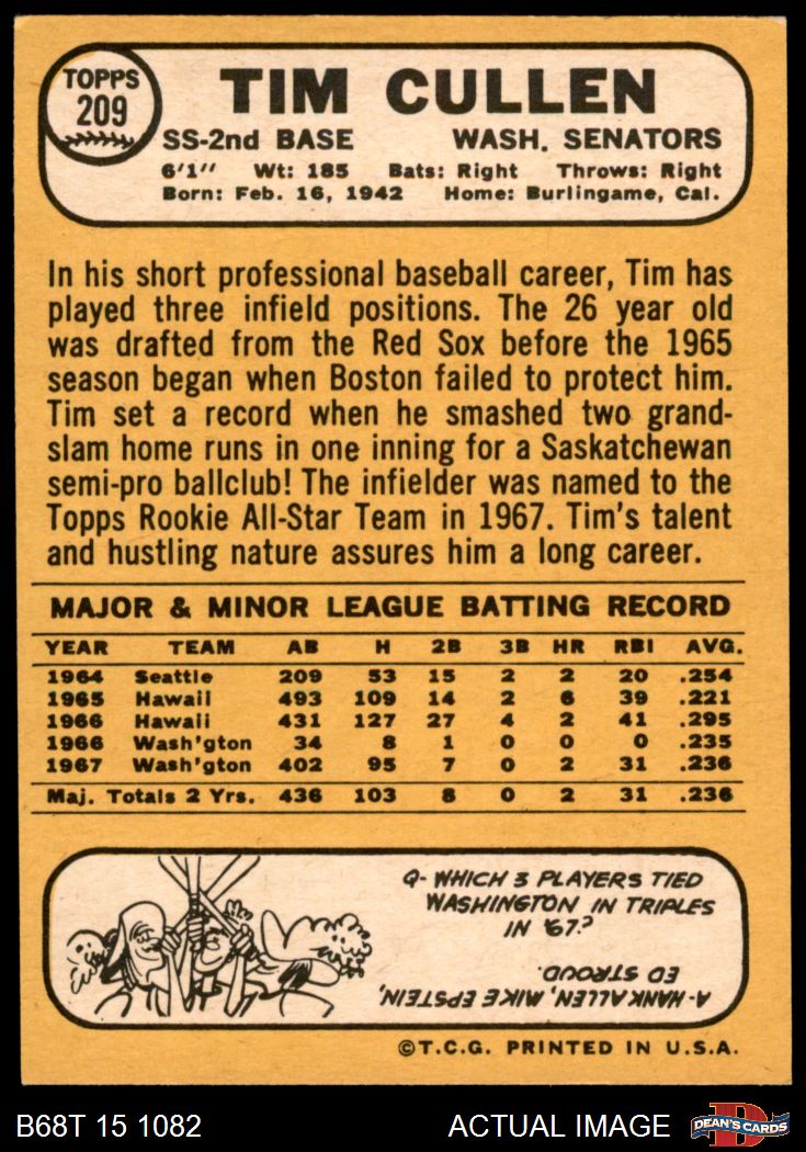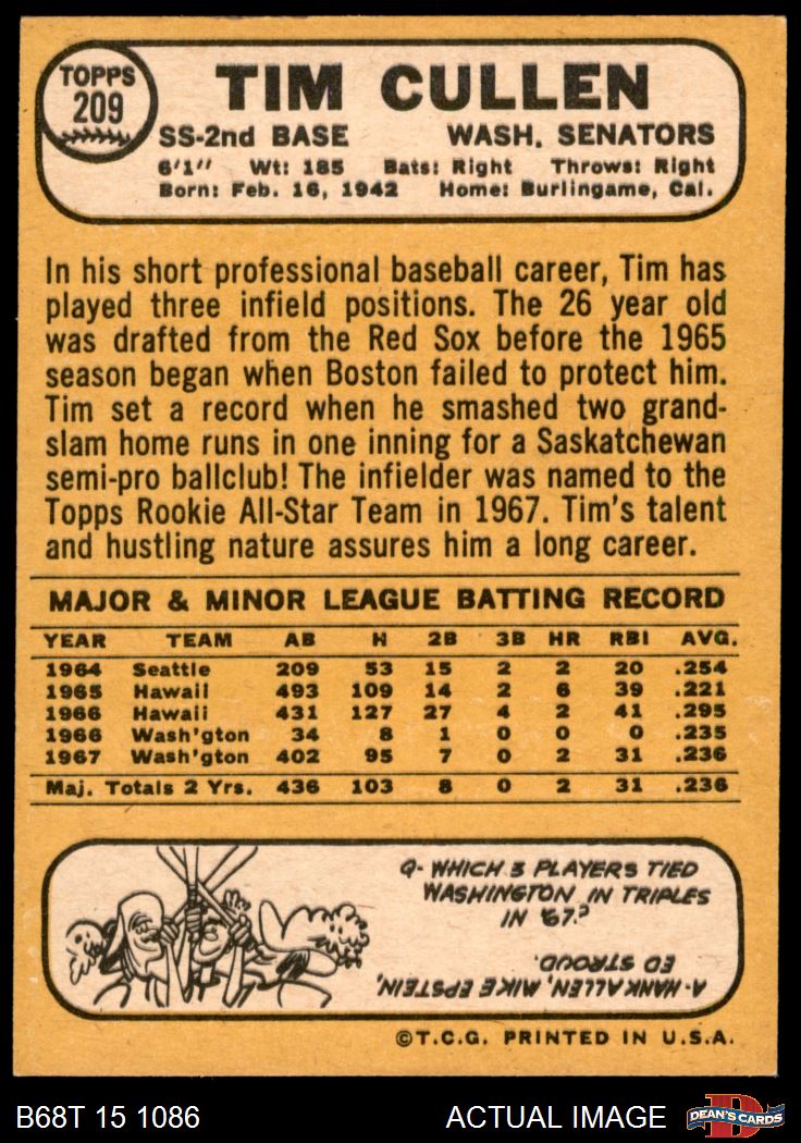 1968 Topps #209 Tim Cullen 6 - EX/MT