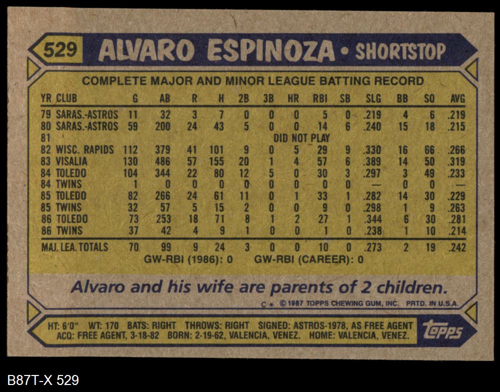 1987 Topps #529 Alvaro Espinoza